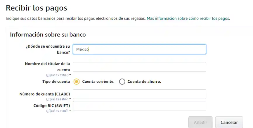 Las opciones de pago disponibles para el autor dependerán de la ubicación geográfica de su banco y la facilidad que tenga Amazon KDP para enviar pagos a su banco.