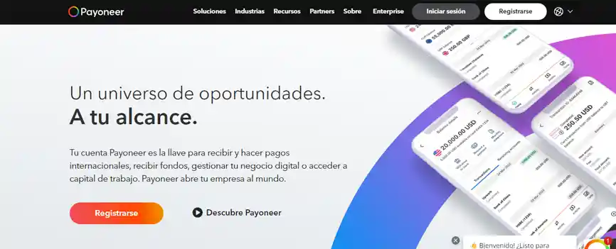 Payoneer es una plataforma de pagos internacionales (similar a PayPal).
