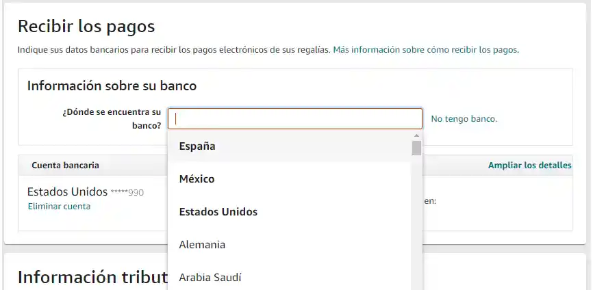 Al momento de haber configurado su cuenta de KDP se especificó alguna de las 3 opciones de pago mencionadas.